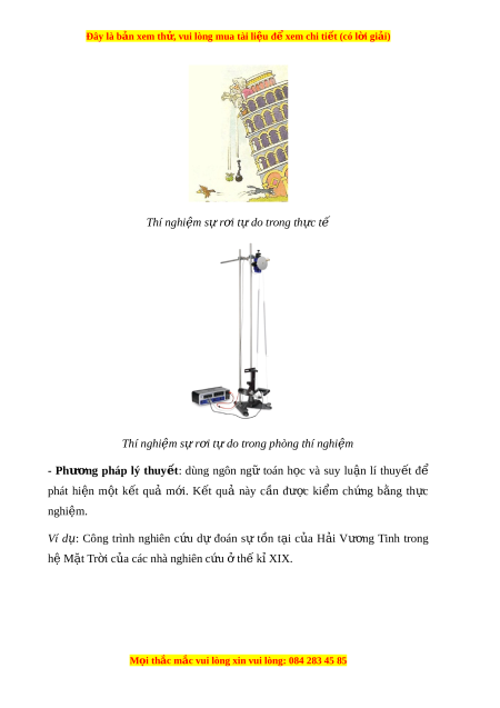Đây là bản xem th , vu ử i lòng mua tài li u ệ đ xe ể m chi ti t (c ế ó l i ờ gi i ả ) Thí nghi m ệ s r ự i ơ t do t ự rong th c t ự ế Thí nghi m ệ sự r i ơ t do t ự rong phòng thí nghi m ệ - Phư ng ơ pháp lý thuy t