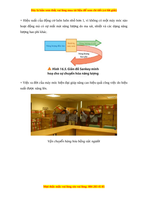 Đây là bản xem th , vu ử i lòng mua tài li u ệ đ xe ể m chi ti t ế (có l i ờ gi i ả ) + Hi u ệ su t ấ c a ủ đ ng ộ cơ luôn luôn nh ỏ h n ơ 1, vì không có m t ộ máy móc nào ho t ạ đ ng ộ mà có sự m t ấ mát năng lư ng ợ do ma sát, nhi t ệ và các d ng ạ năng lư ng hao phí ợ khác. + Vi c r ệ a đ i ờ c a m ủ áy móc hi n đ ệ i ạ giúp nâng cao hi u qu ệ công vi ả c do hi ệ u ệ suất đư c ợ nâng lên. V n chuy ậ n hàng hóa b ể ng ằ s c ứ ngư i ờ M i