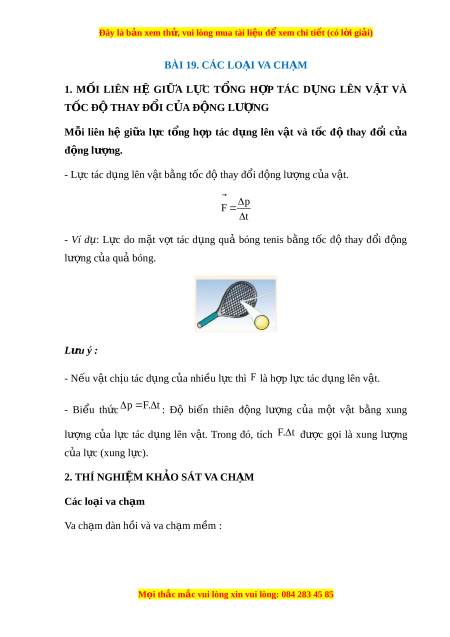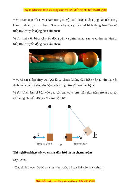 Đây là bản xem th , vu ử i lòng mua tài li u ệ đ xe ể m chi ti t ế (có l i ờ gi i ả ) - Đánh giá đư c ợ đ ng ộ lư ng, ợ năng lư ng ợ c a ủ t ng ừ v t ậ và c a ủ h ệ trư c ớ và sau khi x y r ả a va ch m ạ . T k ừ t ế quả thí nghi m