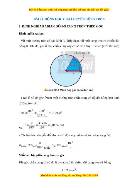 Đây là bản xem th , vu ử i lòng mua tài li u ệ đ xe ể m chi ti t ế (có l i ờ gi i ả ) BÀI 20. Đ N Ộ G H C Ọ C A Ủ CHUY N Ể Đ N Ộ G TRÒN 1. Đ N
