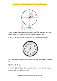 ằ số thì trong các kho ng ả th i ờ gian b ng ằ nhau, góc quay đư c ợ cũng b ng nhau. ằ Chuy n đ ể ng t ộ ròn này là chuy n ể đ ng t ộ ròn đ u. ề Ví dụ: Chuy n ể đ ng c ộ a ủ đ u m ầ ũi kim đ ng h ồ l ồ à chuy n ể đ ng t ộ ròn đ u. ề L u ư ý: Khi cánh qu t ạ b t ắ đ u ầ quay, chuy n ể đ ng ộ quay c a ủ cánh qu t ạ là không đ u. ề V n d ậ ng t ụ c đ ố góc ộ Ví d : ụ Xác đ nh ị t c ố đ ộ góc c a ủ kim giây trên đ ng ồ h . ồ Kim giây trên đ ng ồ hồ quay m t ộ vòng trong th i ờ gian 60 giây. M i