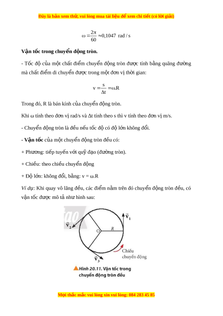 Đây là bản xem th , vu ử i lòng mua tài li u ệ đ xe ể m chi ti t (c ế ó l i ờ gi i ả ) 2 0 ,1047 rad / s 60 Vận t c t ố rong chuy n đ ể ng t ộ ròn. - Tốc độ c a ủ m t ộ ch t ấ đi m ể chuy n ể đ ng ộ tròn đư c ợ tính b ng ằ quãng đư ng ờ mà chất đi m ể di chuy n đ ể ược trong m t ộ đ n v ơ t ị h i ờ gian: s v . R t