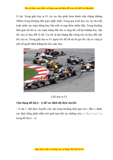 ấ . Trong quá trình đua các tay đua b t ắ bu c ộ ph i ả vào tr m ạ d ng ừ thay l p ố m i ớ và n p ạ thêm nhiên li u. ệ Trong kho ng ả th i ờ gian từ khi xe vào tr m ạ d ng ừ đ n ế khi xe tăng t c ố tr ở l i ạ đư ng ờ đua, v n ậ tốc c a ủ xe thay đ i ổ rõ r t ệ . Gia t c ố là đ i ạ lư ng ợ đ c ặ tr ng ư cho s ự thay đ i ổ v n ậ tốc c a ủ xe. Trong gi i ả đua xe F1 ngoài t c ố đ ộ t i ố đa thì gia t c ố c a ủ xe cũng là y u t ế ố quy t ế định th ng ắ l i ợ c a cu ủ c ộ đua. Gi i ả đua xe F1 V n d ậ ng đ ụ t ồ h ( ị v - t) đ xác đ ể nh đ ị d ộ ch chuy ị n ể