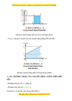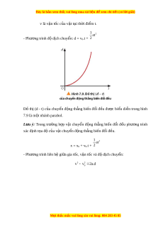 ệ ích hình thang OABD 2. CÁC PHƯ N Ơ G TRÌNH C A Ủ CHUY N Ể Đ N Ộ G TH N Ẳ G BI N Ế Đ I Ổ ĐỀU - Phư ng t ơ rình gia t c: ố a = h ng ằ số - Phư ng t ơ rình v n t ậ c: ố v = v0 + at Trong đó: v0 là v n t ậ ốc c a ủ v t ậ t i ạ th i ờ đi m ể t0. M i ọ thắc m c