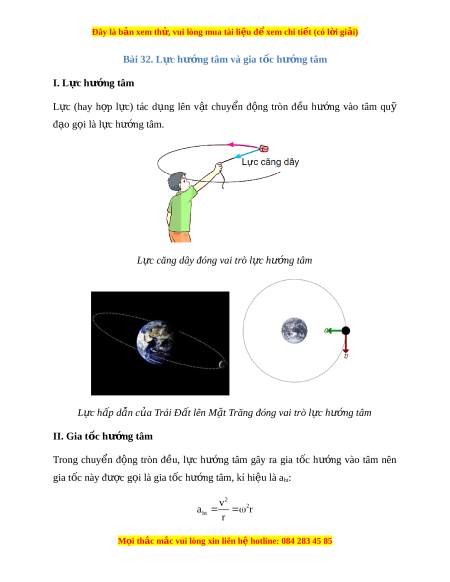 Đây là bản xem th , vu ử i lòng mua tài li u ệ đ xe ể m chi ti t (c ế ó l i ờ gi i ả ) Bài 32. L c h ự ư ng t ớ âm và gia t c ố hư ng t ớ âm I. L c h ự ư ng t ớ âm L c ự (hay h p ợ l c ự ) tác d ng ụ lên v t ậ chuy n ể đ ng ộ tròn đ u ề hư ng ớ vào tâm quỹ đ o ạ g i ọ là l c h ự ư ng ớ tâm.
