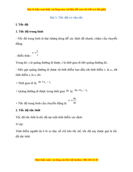 Đây là bản xem th , vu ử i lòng mua tài li u ệ đ xe ể m chi ti t (c ế ó l i ờ gi i ả ) Bài 5. Tốc đ và v ộ ận t c ố I. T c đ ố ộ 1. T c ố đ t ộ rung bình