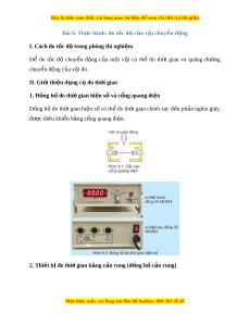 ộ rong phòng thí nghi m ệ Để đo t c ố độ chuy n ể đ ng ộ c a ủ m t ộ v t ậ có thể đo th i ờ gian và quãng đư ng ờ chuy n ể đ ng c ộ a v ủ t ậ đó. II. Gi i ớ thi u d ệ ng c ụ đo t ụ h i ờ gian 1. Đ ng ồ h đo t ồ h i ờ gian hi n s ệ và c ố ng quang đ ổ i n ệ Đồng hồ đo th i ờ gian hi n ệ s ố có th ể đo th i ờ gian chính xác đ n ế ph n ầ nghìn giây, đư c ợ đi u khi ề n b ể ng ằ c ng quang ổ đi n. ệ 2. Thi t ế b đ ị o th i ờ gian b ng c ằ n rung ( ầ đ ng ồ h c ồ n ru ầ ng) M i