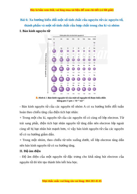 Đây là bản xem th , vu ử i lòng mua tài li u ệ đ xe ể m chi ti t ế (có l i ờ gi i ả ) Bài 6: Xu hư ng bi ớ n đ ế i ổ m t ộ s t ố ính ch t ấ c a nguyên t ủ các ử nguyên t , ố thành ph n và m ầ t ộ s t ố ính ch t ấ c a h ủ p ch ợ t