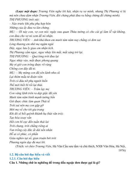 (Trích: vở chèo Trương Viên, Hà Văn Cầu sưu tầm và chú thích, NXB Văn Hóa, Hà Nội, 1976)