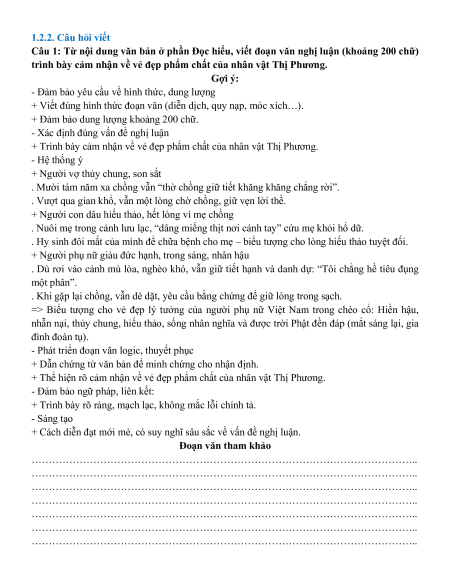 trình bày cảm nhận về vẻ đẹp phẩm chất của nhân vật Thị Phương. Gợi ý: