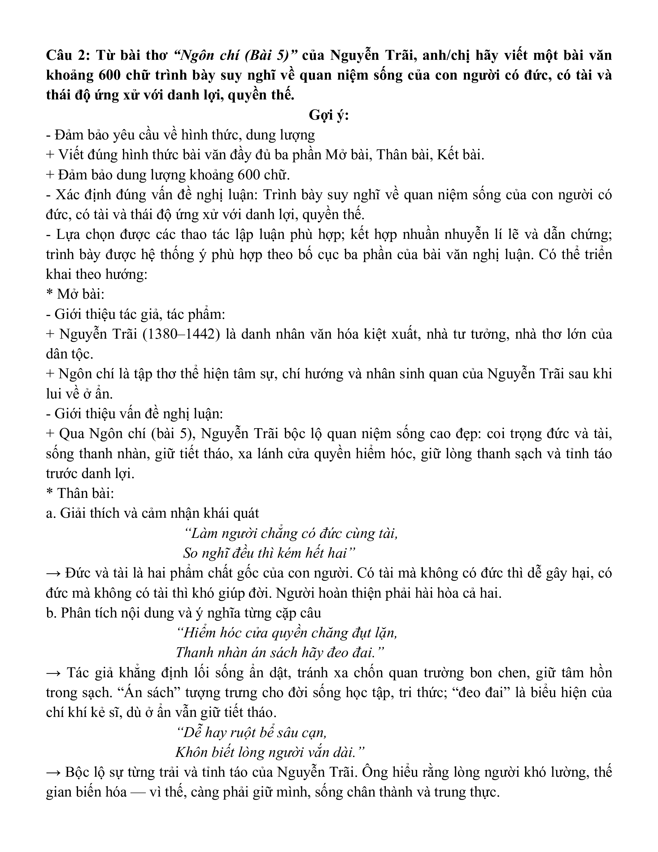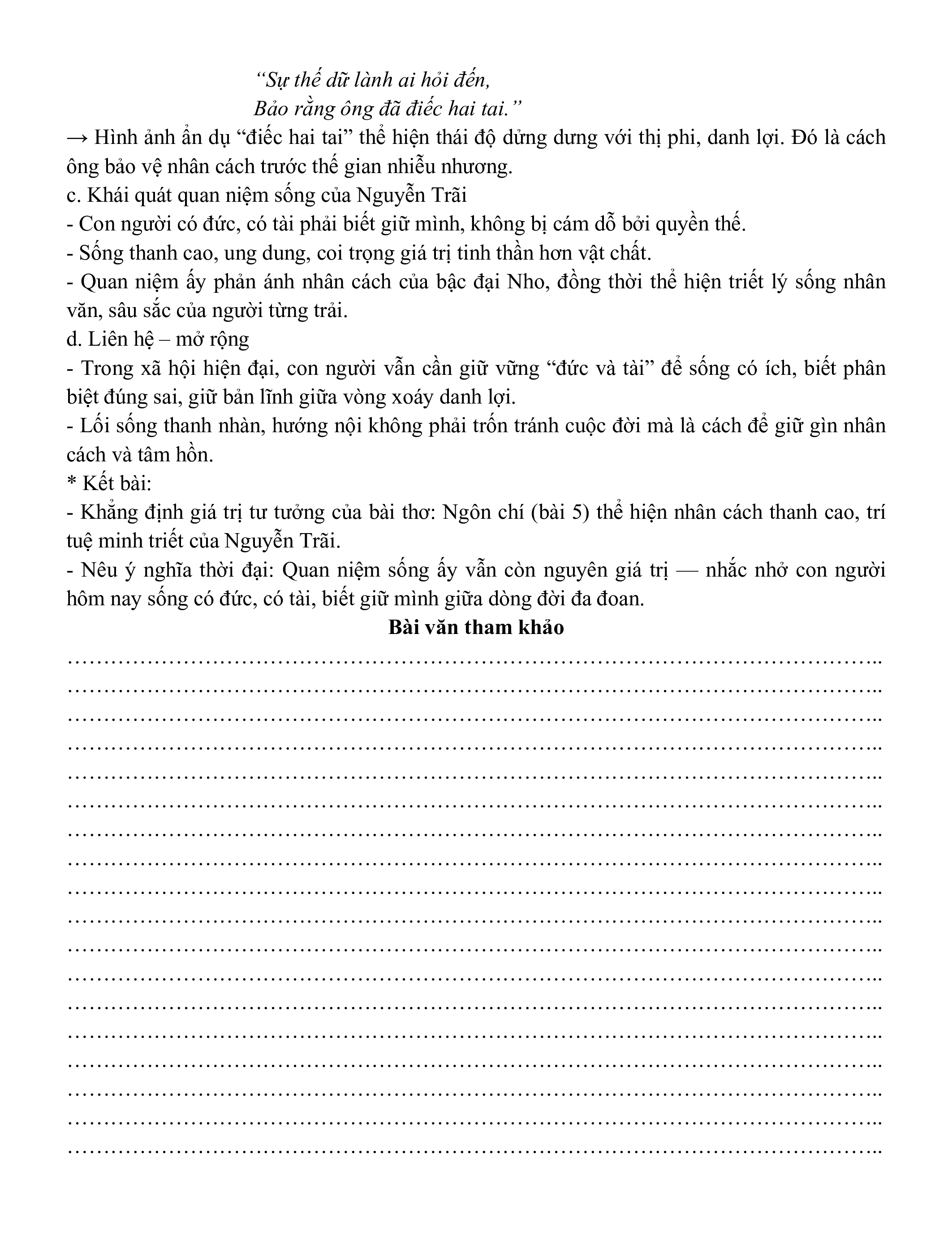 Ngữ liệu ngoài sgk lớp 10 phần Thơ, văn Nguyễn Trãi