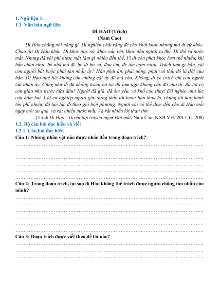 1.1. Văn bản ngữ liệu DÌ HẢO (Trích) (Nam Cao)