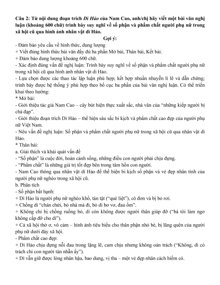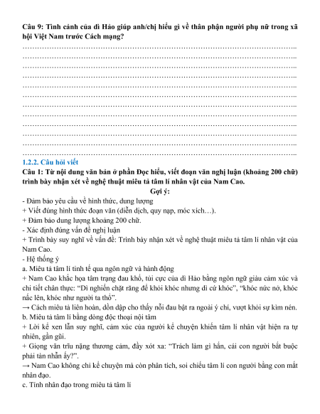Câu 9: Tình cảnh của dì Hảo giúp anh/chị hiểu gì về thân phận người phụ nữ trong xã