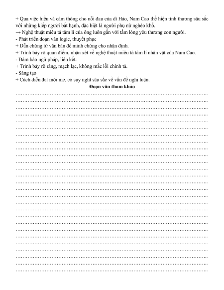+ Trình bày rõ quan điểm, nhận xét về nghệ thuật miêu tả tâm lí nhân vật của Nam Cao.