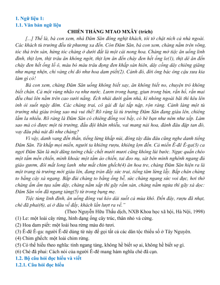 1.2. Bộ câu hỏi đọc hiểu và viết