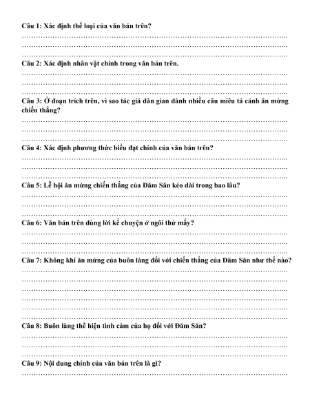 Câu 7: Không khí ăn mừng của buôn làng đối với chiến thắng của Đăm Săn như thế nào?