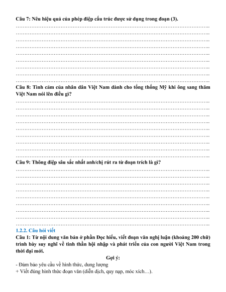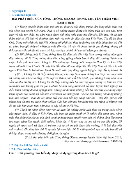 1.2. Bộ câu hỏi đọc hiểu và viết