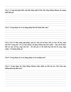 Câu 6: Trong đoạn (4), tổng thống Obama nhìn nhận sự tiến bộ của Việt Nam qua