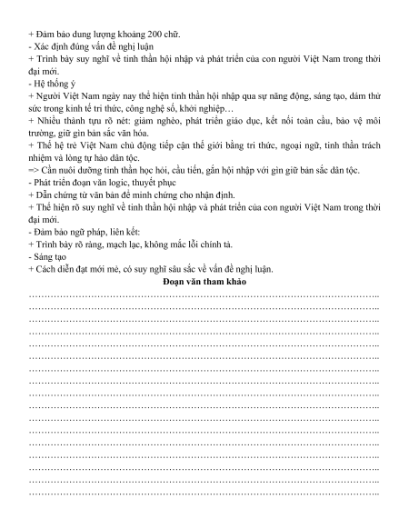 trình bày suy nghĩ về tinh thần hội nhập và phát triển của con người Việt Nam trong thời đại mới. Gợi ý: