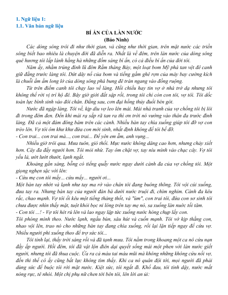 Câu 1: Từ đoạn trích “Bí ẩn của làn nước” (Bảo Ninh), anh/chị hãy viết một đoạn văn