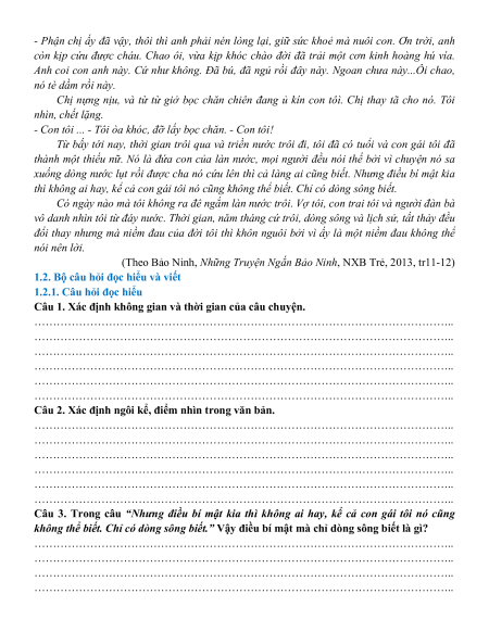 1.2. Bộ câu hỏi đọc hiểu và viết