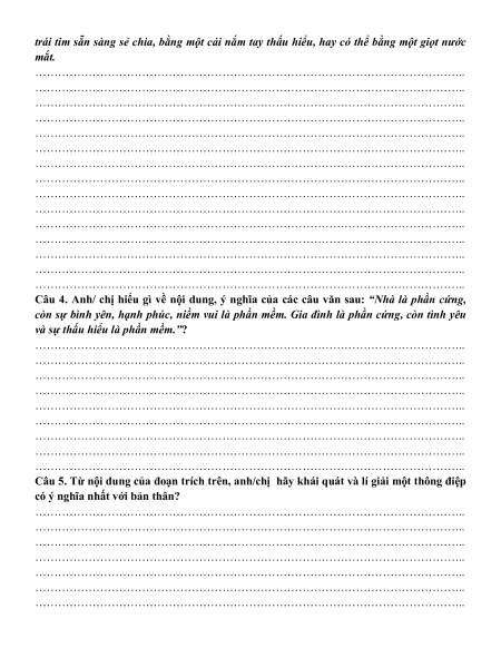 Câu 5. Từ nội dung của đoạn trích trên, anh/chị hãy khái quát và lí giải một thông điệp