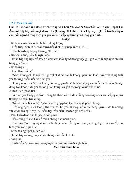 Câu 1: Từ nội dung đoạn trích trong văn bản “Ai qua là bao chốn xa…” của Phạm Lữ