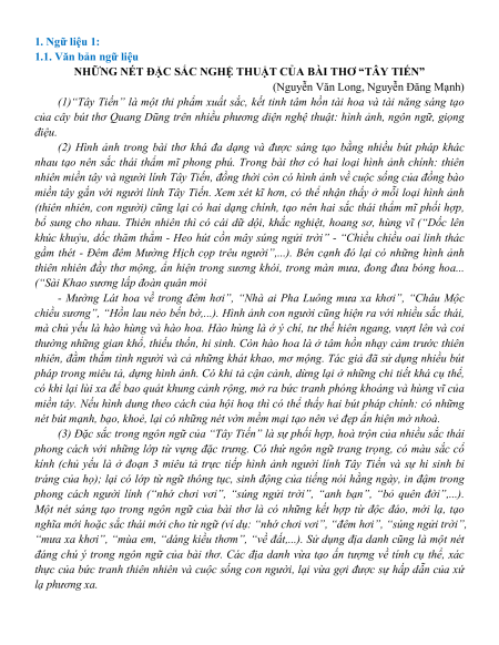 NHỮNG NÉT ĐẶC SẮC NGHỆ THUẬT CỦA BÀI THƠ “TÂY TIẾN”
