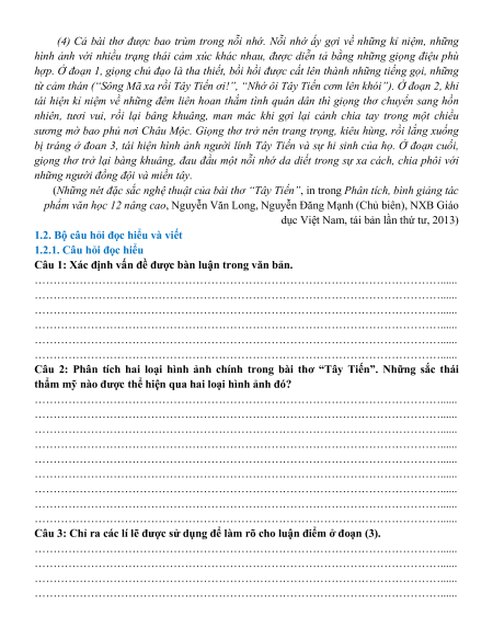 1.2. Bộ câu hỏi đọc hiểu và viết