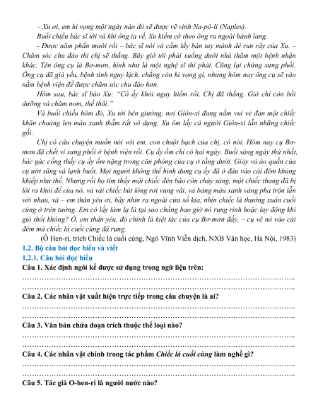 1.2. Bộ câu hỏi đọc hiểu và viết