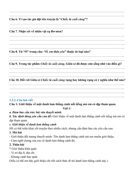 Câu 1: Giới thiệu về một danh lam thắng cảnh nổi tiếng mà em có dịp tham quan. Gợi ý:
