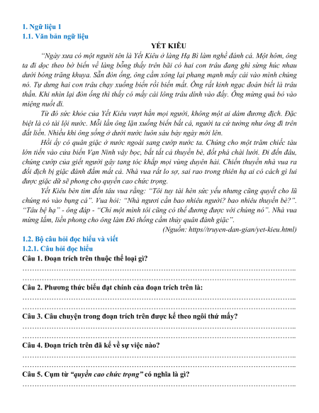 1.1. Văn bản ngữ liệu YẾT KIÊU