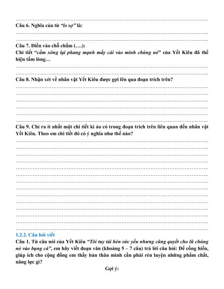 1.2. Bộ câu hỏi đọc hiểu và viết
