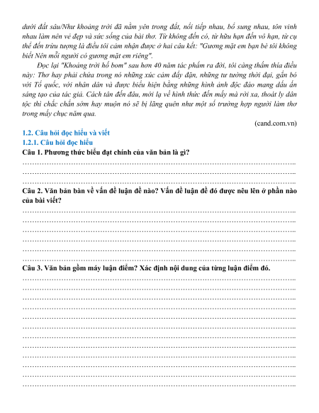 1.2. Câu hỏi đọc hiểu và viết