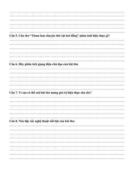 Câu 7. Vì sao có thể nói bài thơ mang giá trị hiện thực sâu sắc?