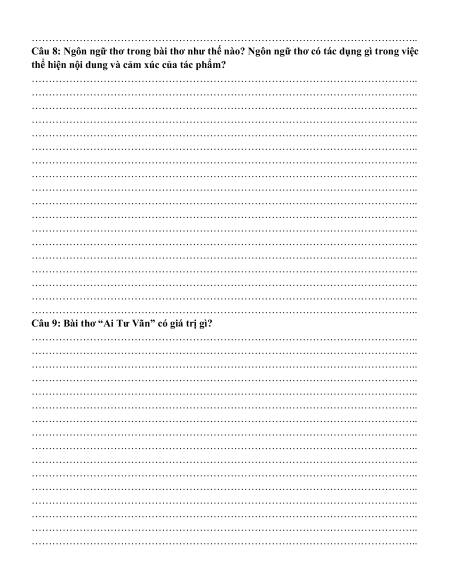 Câu 1: Bài thơ “Ai Tư Vãn” được viết theo thể thơ nào? Đặc điểm của thể thơ đó là gì?