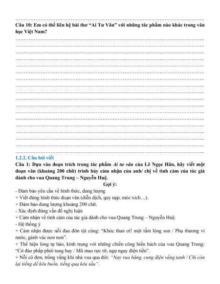 Chú thích: Bài thơ "Ai Tư Vãn" là khúc ngâm khóc thương vua Quang Trung - Nguyễn Huệ,