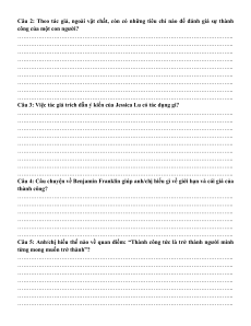 Câu 4: Câu chuyện về Benjamin Franklin giúp anh/chị hiểu gi về giới hạn và cái giá của thành công?