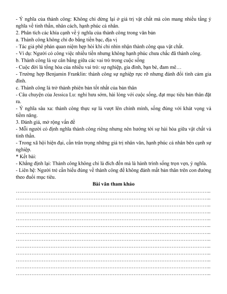 - Xác định đúng vấn đề nghị luận: Phân tich ý nghĩa của sự thanh công đối với mỗi người