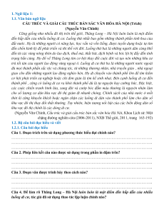 + Trình bày suy nghĩ của anh/chị về tác động của các luồng di cư đến đời sống văn hóa đô thị Hà Nội. - Hệ thống ý
