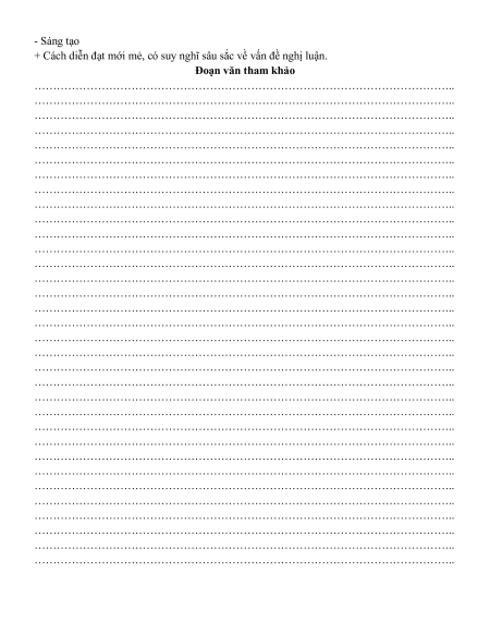 + Cách diễn đạt mới mẻ, có suy nghĩ sâu sắc về vấn đề nghị luận.