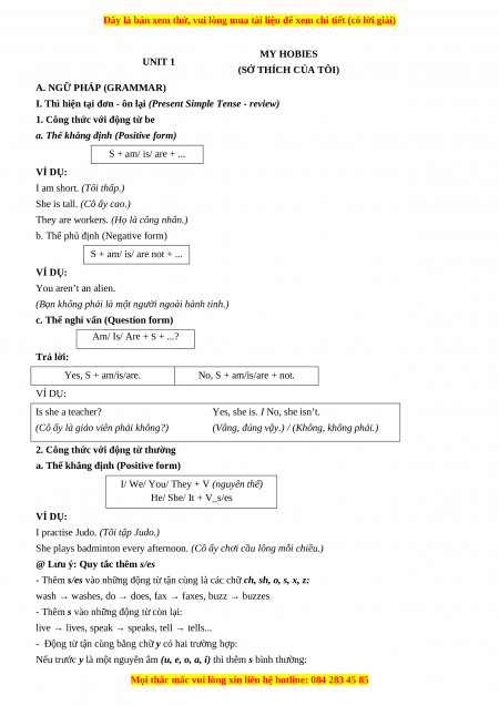 (SỞ THÍCH CỦA TÔI) A. NGỮ PHÁP (GRAMMAR)