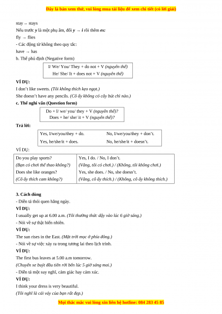 I. Thì hiện tại đơn - ôn lại (Present Simple Tense - review)