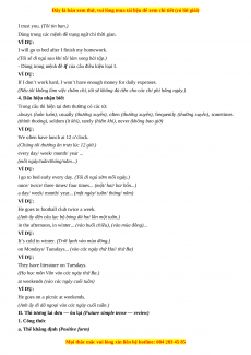 (thỉnh thoảng), seldom (ít khi), rarely (hiếm khi), never (không bao giờ) VÍ DỤ: