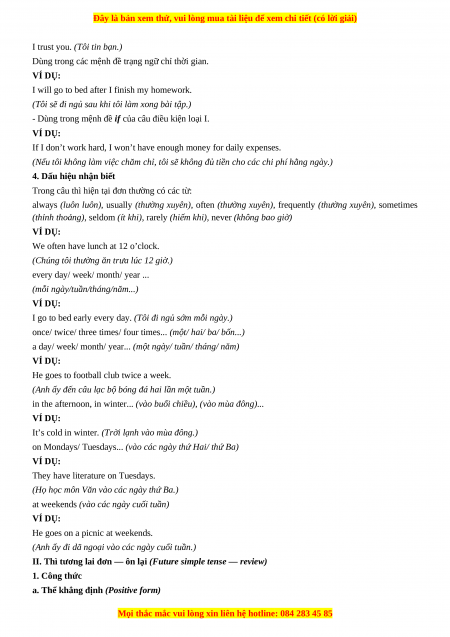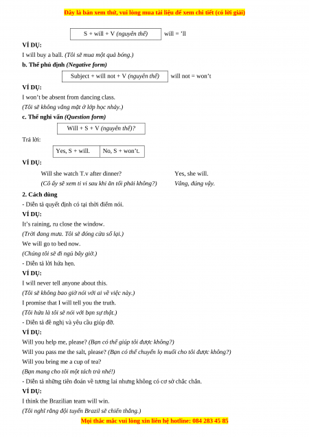 II. Thì tương lai đơn — ôn lại (Future simple tense — review) 1. Công thức