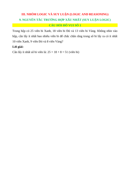 III. NHÓM LOGIC VÀ SUY LUẬN (LOGIC AND REASONING)