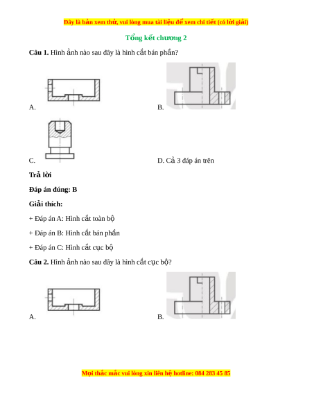 Đây là bản xem th , vu ử i lòng mua tài li u ệ đ xe ể m chi ti t (c ế ó l i ờ gi i ả ) C. V hì ẽ nh c t ắ , m t ặ c t ắ D. C 3 đáp án ả trên Trả l i ờ Đáp án đúng: D