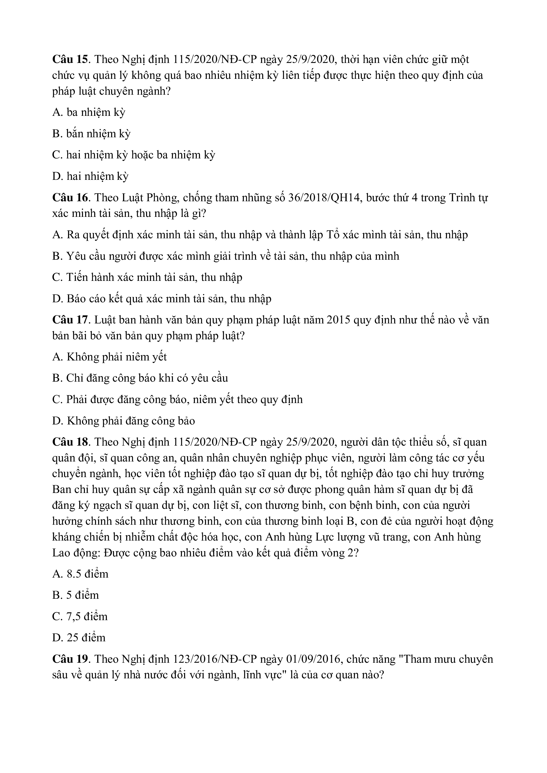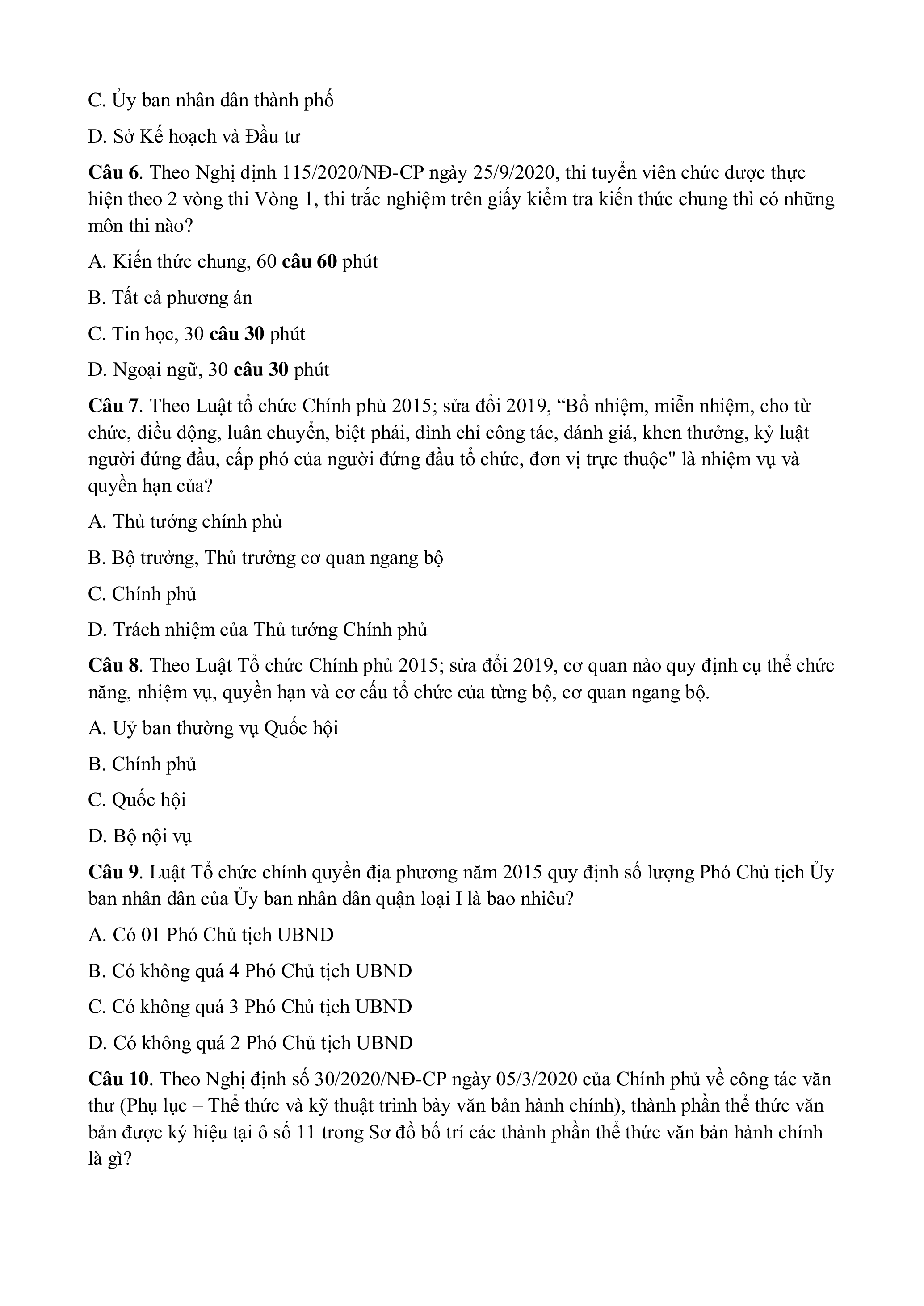 Câu 6. Theo Nghị định 115/2020/NĐ-CP ngày 25/9/2020, thi tuyển viên chức được thực