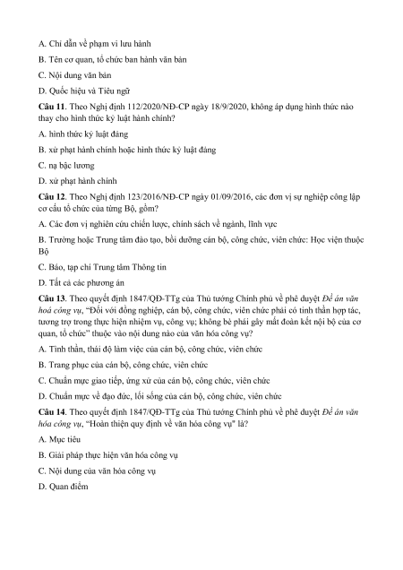 Câu 10. Theo Nghị định số 30/2020/NĐ-CP ngày 05/3/2020 của Chính phủ về công tác văn