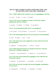 200 CÂU TRẮC NGHIỆM TỪ ĐỒNG NGHĨA MÔN TIẾNG ANH